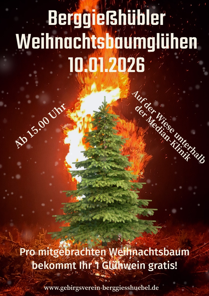Liebe Einwohner und Gäste unserer Stadt, die Mitglieder des Gebirgsvereins 1899 Berggießhübel e.V. wünschen Ihnen ein friedliches, gesundes und erfolgreiches Jahr 2023. Gleich zu Beginn dieses Jahres möchten wir Sie herzlich zum Berggießhübler Weihnachtsbaumglühen einladen.